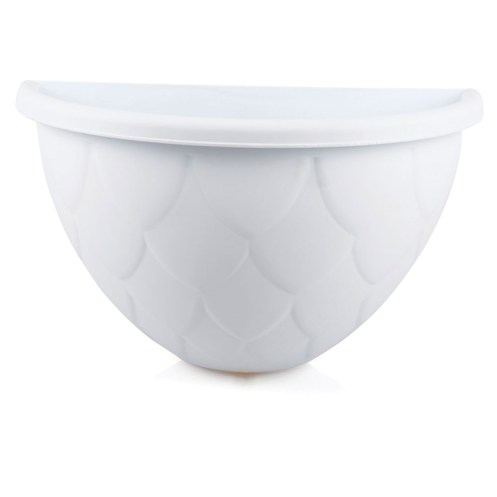 Γλάστρα κατάλληλη για κρέμασμα σε τοίχο, σε λευκό χρώμα. Από